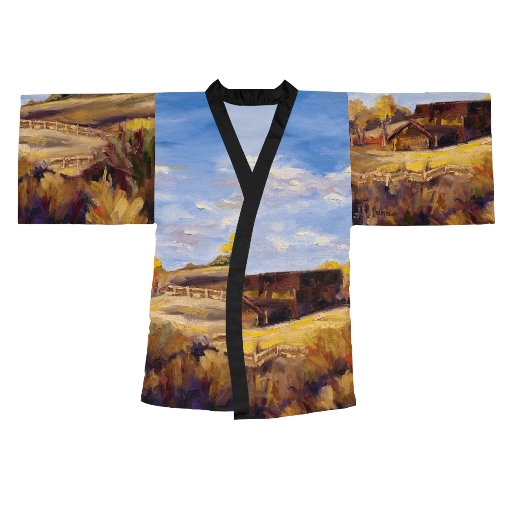 “Montana No. 2” Art Kimono – Elegant Long-Sleeve Robe with Flowing Silhouette
