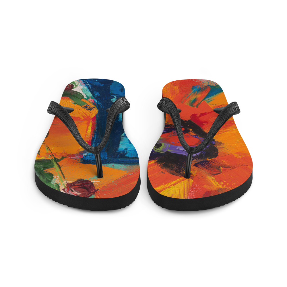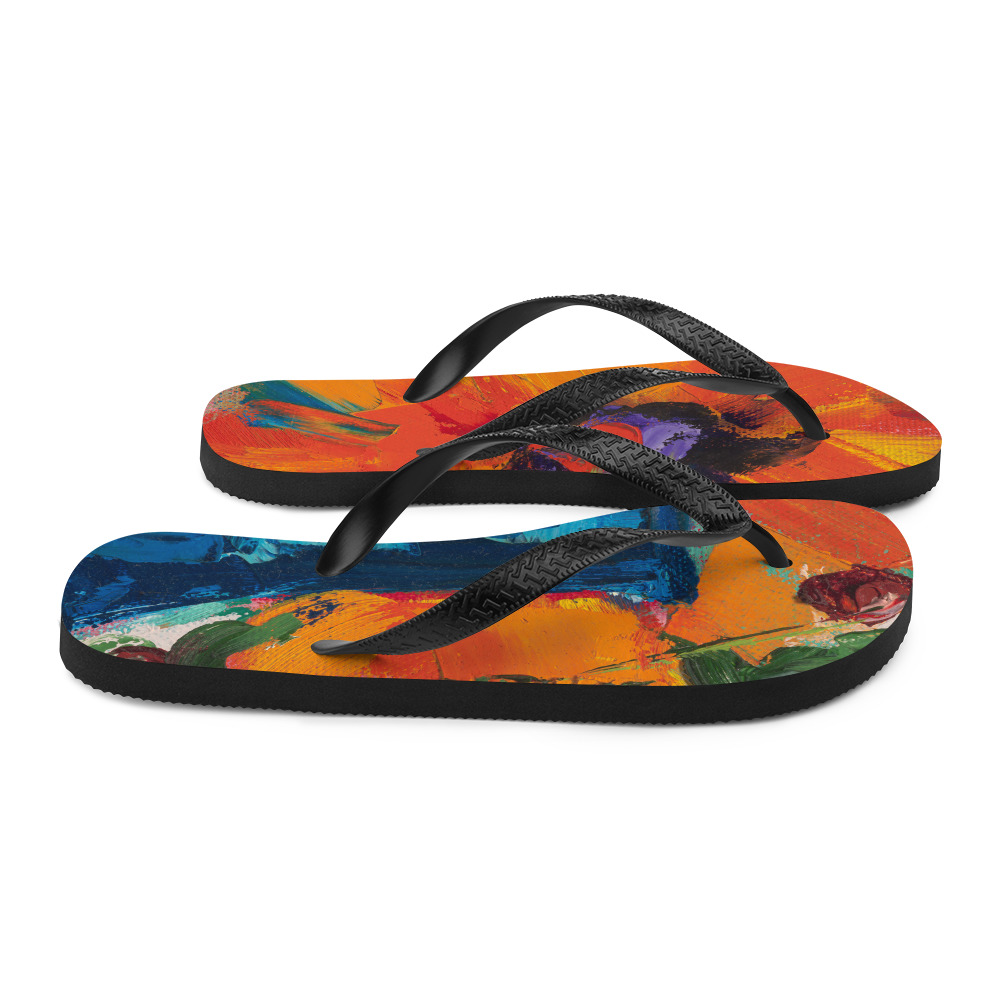 Orange Flower On Blue Vase Flip-Flops